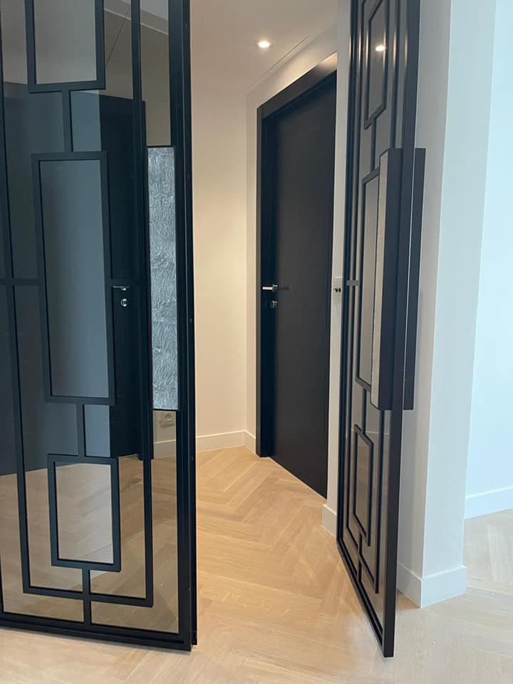 We present you another door model by Sophie Homestyle, which can be finished in any color and any type of glass. The muntin arrangement is very original, decorative and sophisticated. The doors can be double-leaf or sliding, as well as shower doors. We invite you to contact us to process orders with this pattern by e-mail office@sophiehomestyle.com
